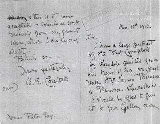Amongst his collection were works by J. Pettie (‘The Step’), S.J. Peploe (‘Roses’), D.Y. Cameron (various), Leon L’Hermitte (‘Figures in Field’) and George Leslie Hunter. He donated a total of seven paintings to Kelvingrove from 1940 to 1945. This was confirmed in a letter to his son in 1990 from Anne Donald who was Keeper of the Fine Art Department of Kelvingrove at that time. As it happens one of these paintings (a Leslie Hunter) was gifted to the Brest Museum in France, which had been destroyed during the war.[44] The letter is shown below – Figure 10.